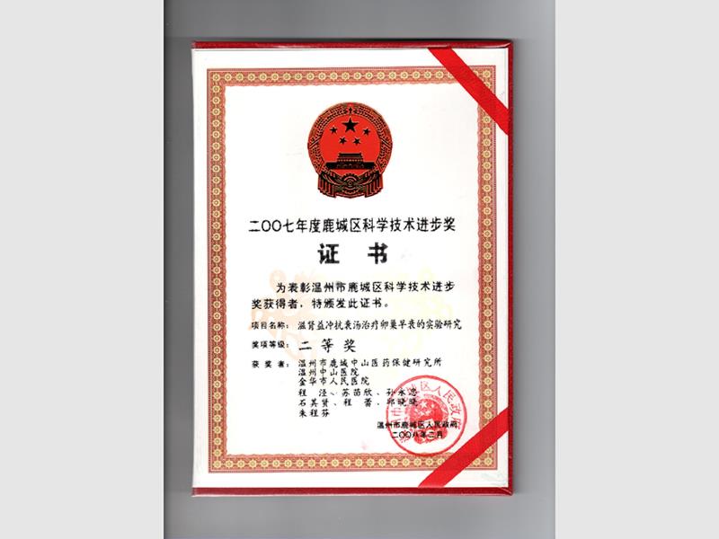 滋肾理冲汤鹿城科学技术二等奖