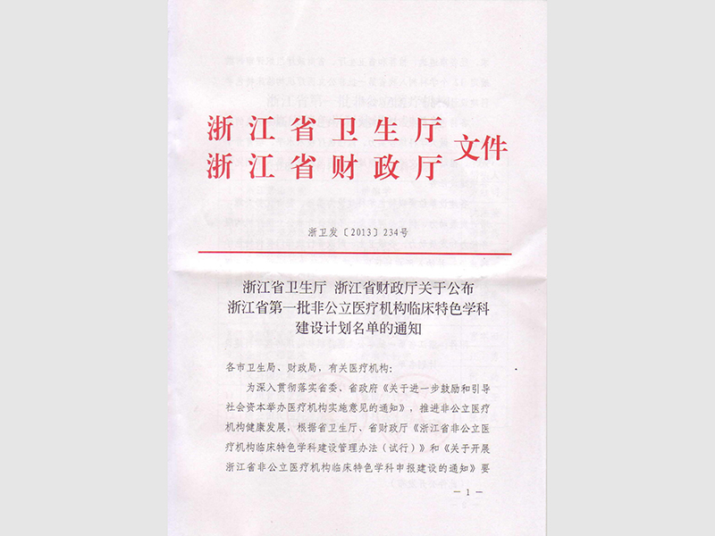 浙卫发234号(非公医疗机构特色学科)