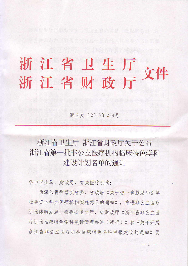 浙卫发234号(非公医疗机构特色学科)